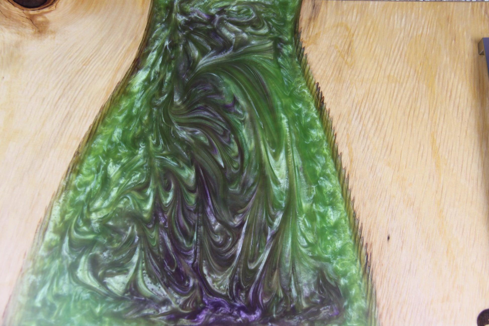 Fill - Resin with Parakeet Green and Lavender powdered pigments